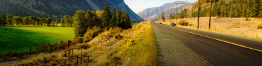 Chartreuse green grazing fields give way to the steep slopes of the coastal range on the road back to Vancouver