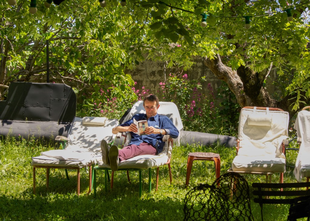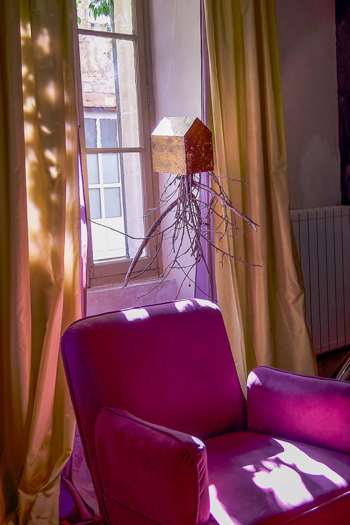 All the conditions were well met in an exceptional four-story 18th century “maison- de-maître”. Surrounded by high walls and located under the bell tower of a 13th century Romanesque church the elegant house also had a large garden planted with mature cherries and a Linden tree whose leafy branches provide shade for an art garden and visiting guests.
