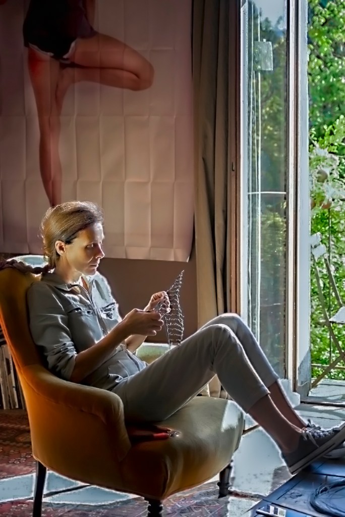 Dire que ses œuvres m’ont intriguée reviendrait à sous-estimer mon intérêt et mes efforts pour en savoir plus ont été généreusement récompensés. Christine et son agent Stephanie Borsa m’ont gracieusement accueillie pour photographier ses œuvres pour ce blog. Cela m’a permis de passer du temps avec Christine et a conduit à d’autres séances de prises de vue dont le suivi de son travail lors d’une résidence chez mathieulustrerie.com
