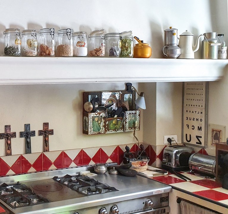 «J’adore ma collection de la Vierge Marie qui provient principalement d’Amérique du Sud et je sens qu’elles me protègent. C’est un sentiment absolument extérieur à la religion – plus comme un talisman ou un charme protecteur. J’aime aussi collectionner des tampons et du ruban adhésif pour les incorporer à des fils, des rubans et des cahiers. C’est incroyablement rassurant d’avoir ces objets autour de moi. “